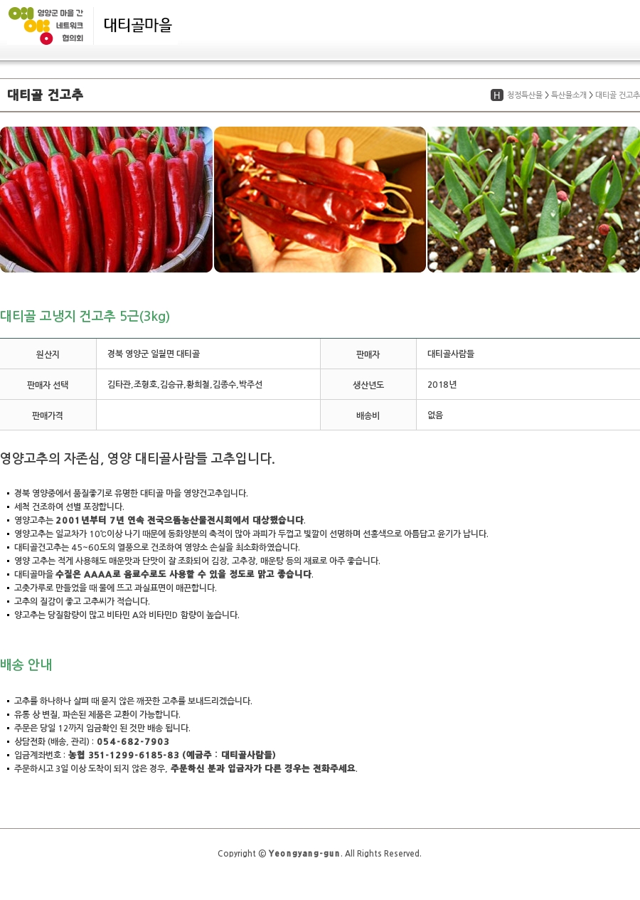 | 원산지 | 경북 영양군 일월면 대티골 | 판매자 | 대티골사람들 |